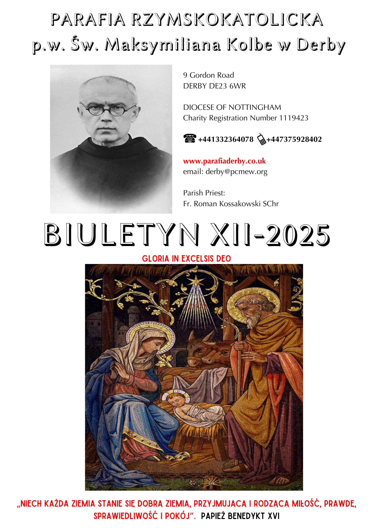 pod wezwaniem Świętego Maksymiliana Marii Kolbe w Derby.